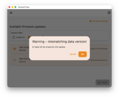 - Click menu on the top left corner and go to Firmware Update screen. Flash latest firmware on the device. (Don't worry, usually it won't erase all your settings. The warning maybe incorrect as StudioX Flow will not be able to check settings version!)